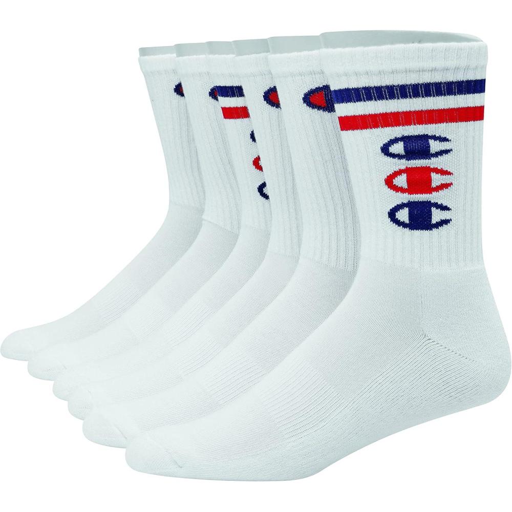 Champion Men’s Moisture-wicking Athletic Crew Socks with Cushioning & Arch Support(White With 3 C’s – 6 Pack)
