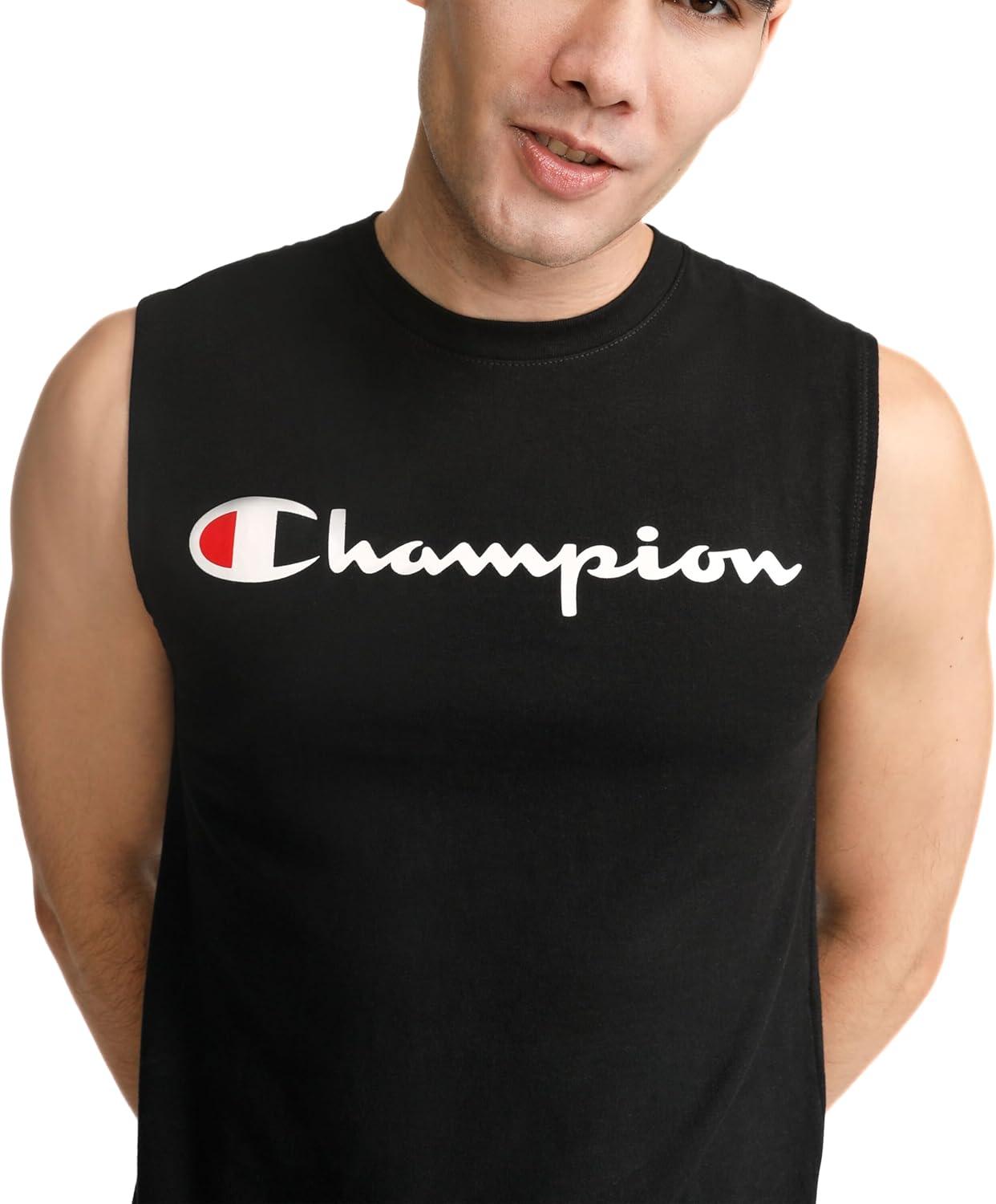 Champion Men’s Muscle Tank, Classic Graphic Muscle Tee, Sleeveless T-shirt for Men (Reg. Or Big & Tall)(Black – Classic Script Logo)