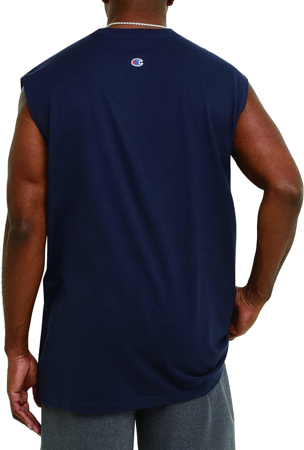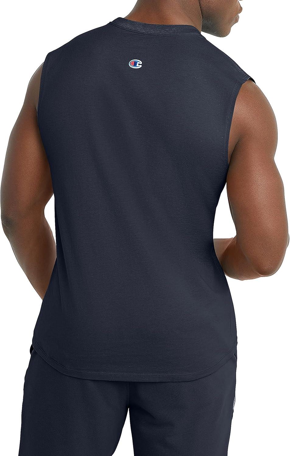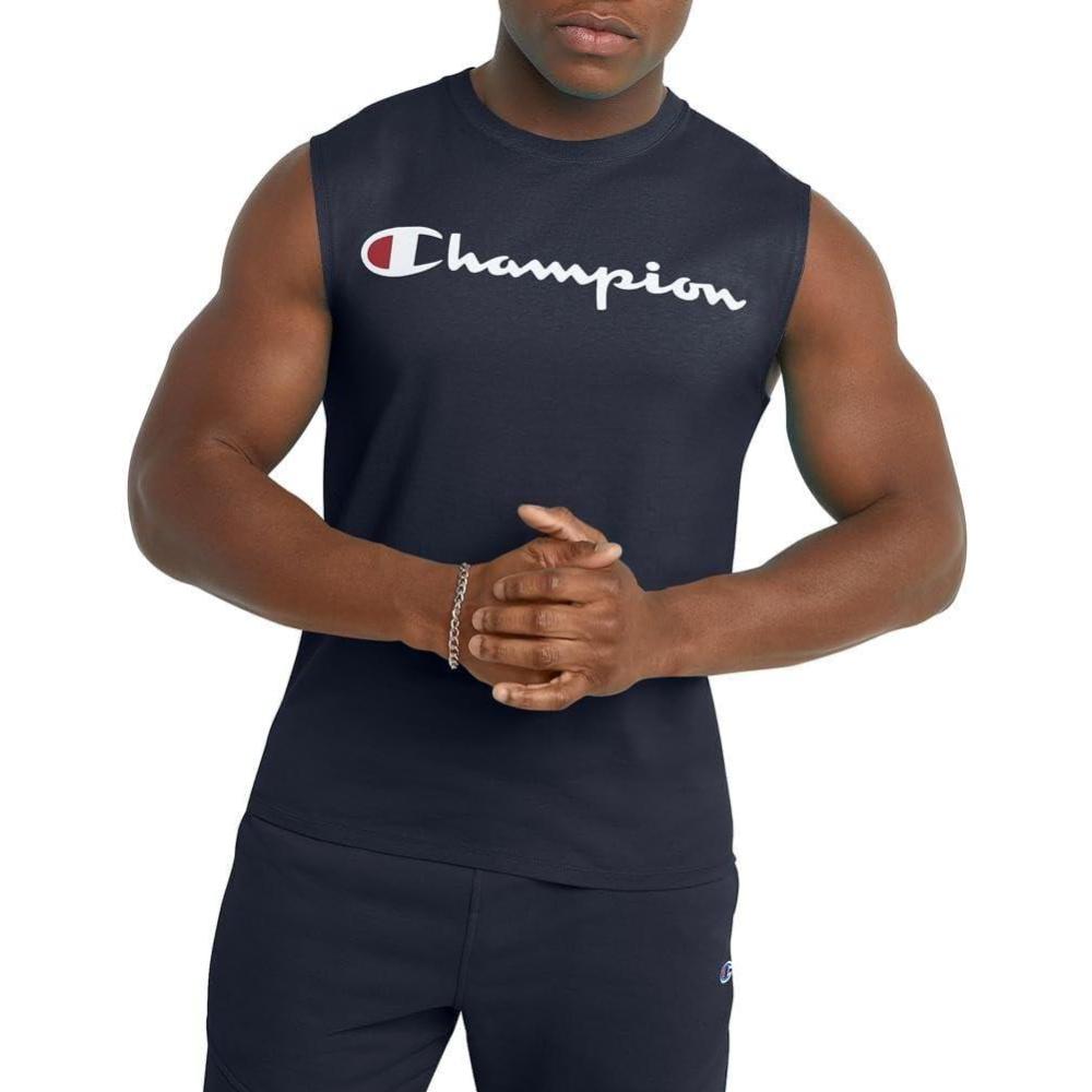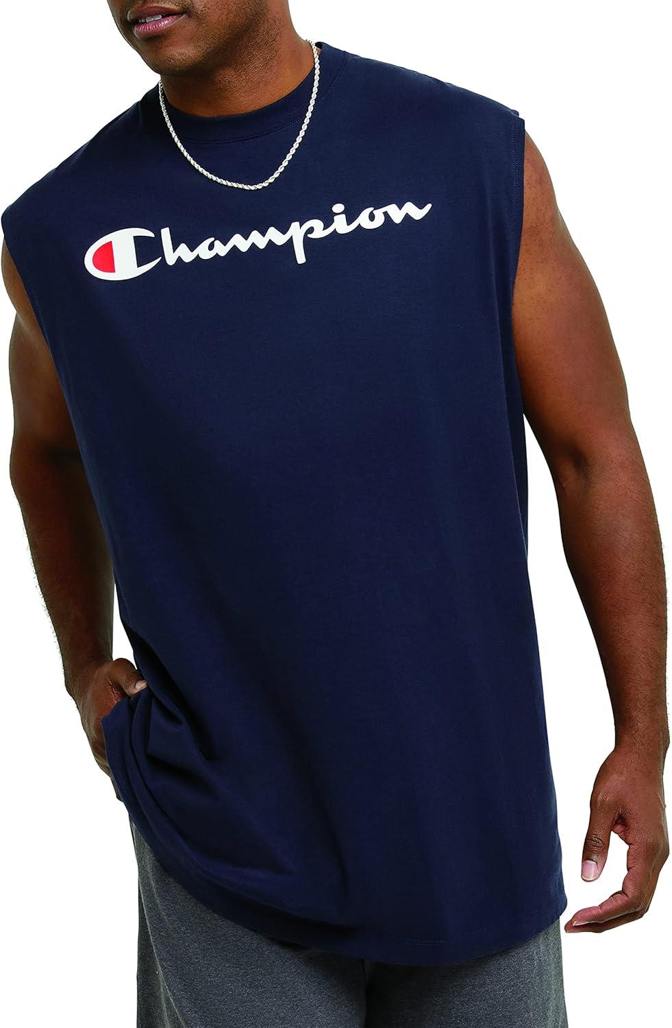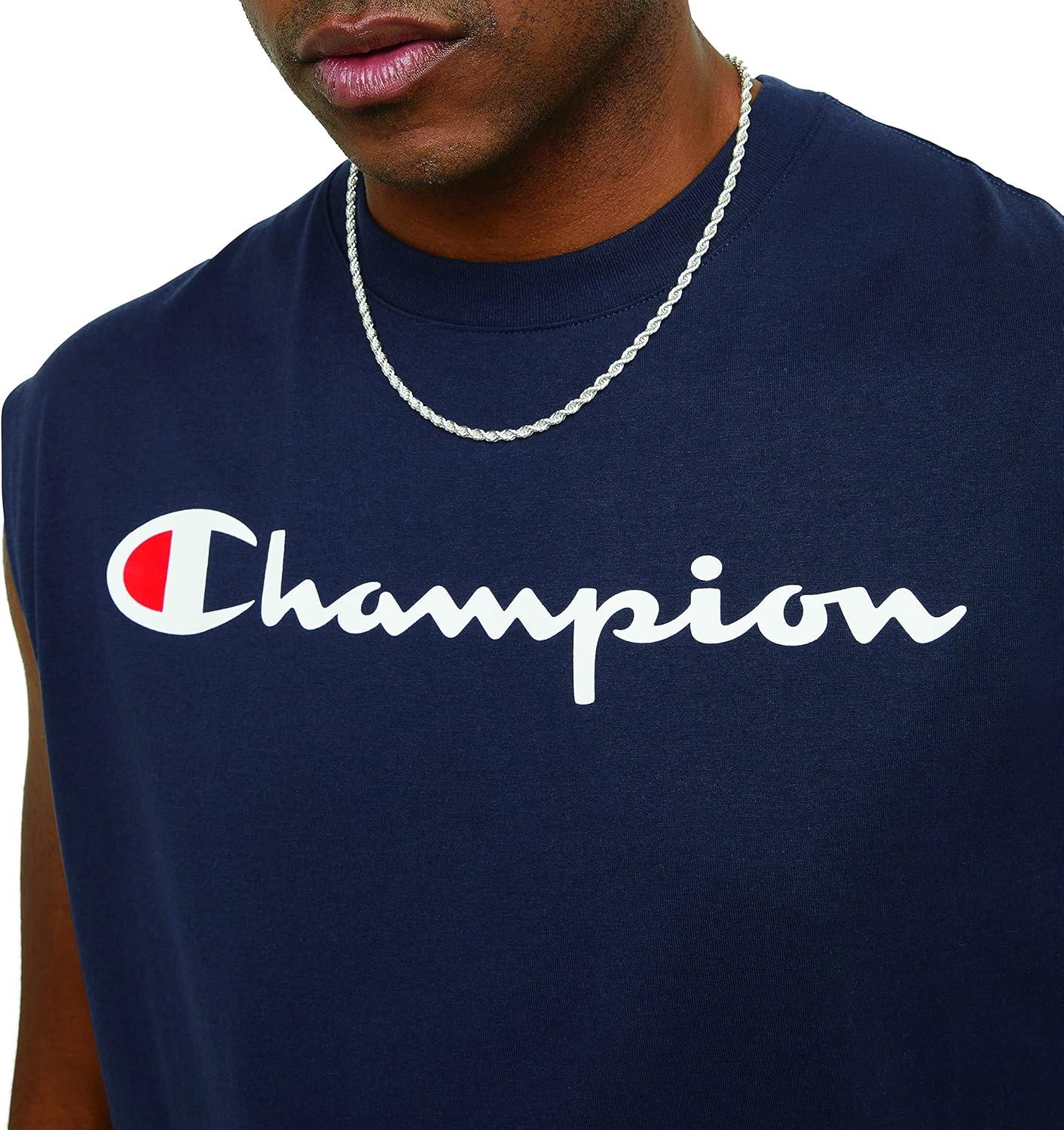 Champion Men’s Muscle Tank, Classic Graphic Muscle Tee, Sleeveless T-shirt for Men (Reg. Or Big & Tall)(Navy – Classic Script Logo)