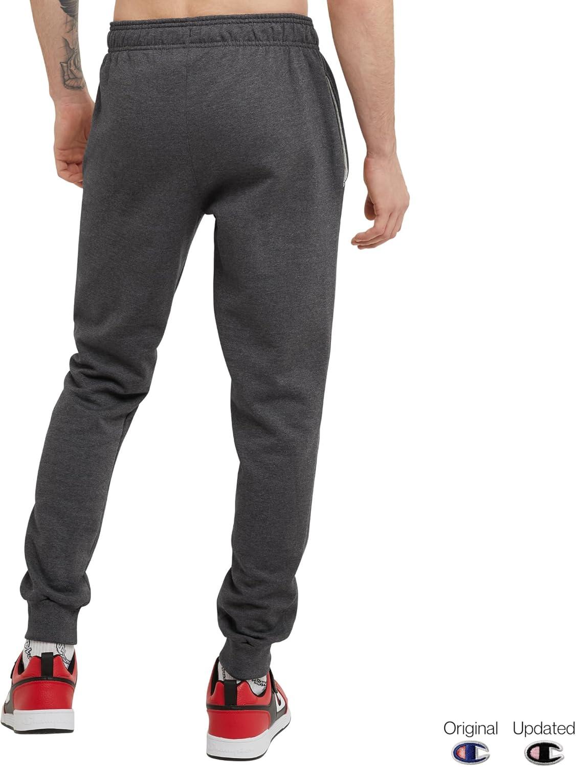 Champion Men’s Powerblend Fleece Joggers(Granite Heather – Classic Script Logo)