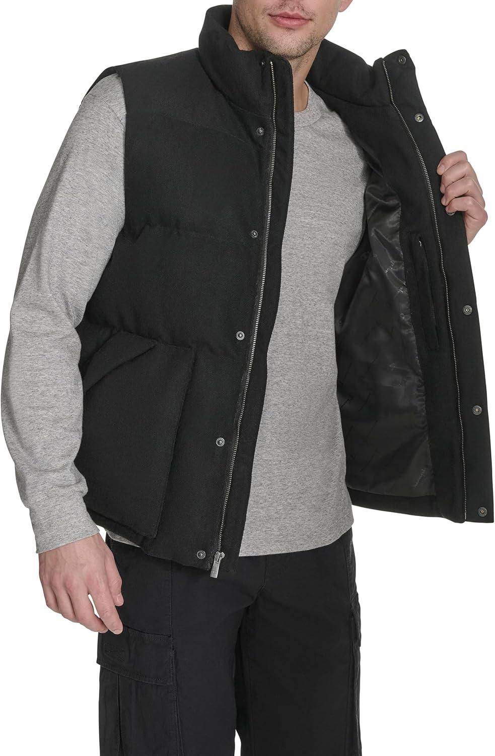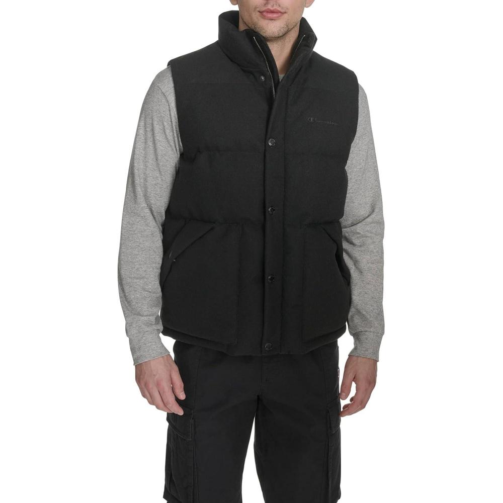 Champion mens Puffer Vest With Name Logo(Black Wool Blend)