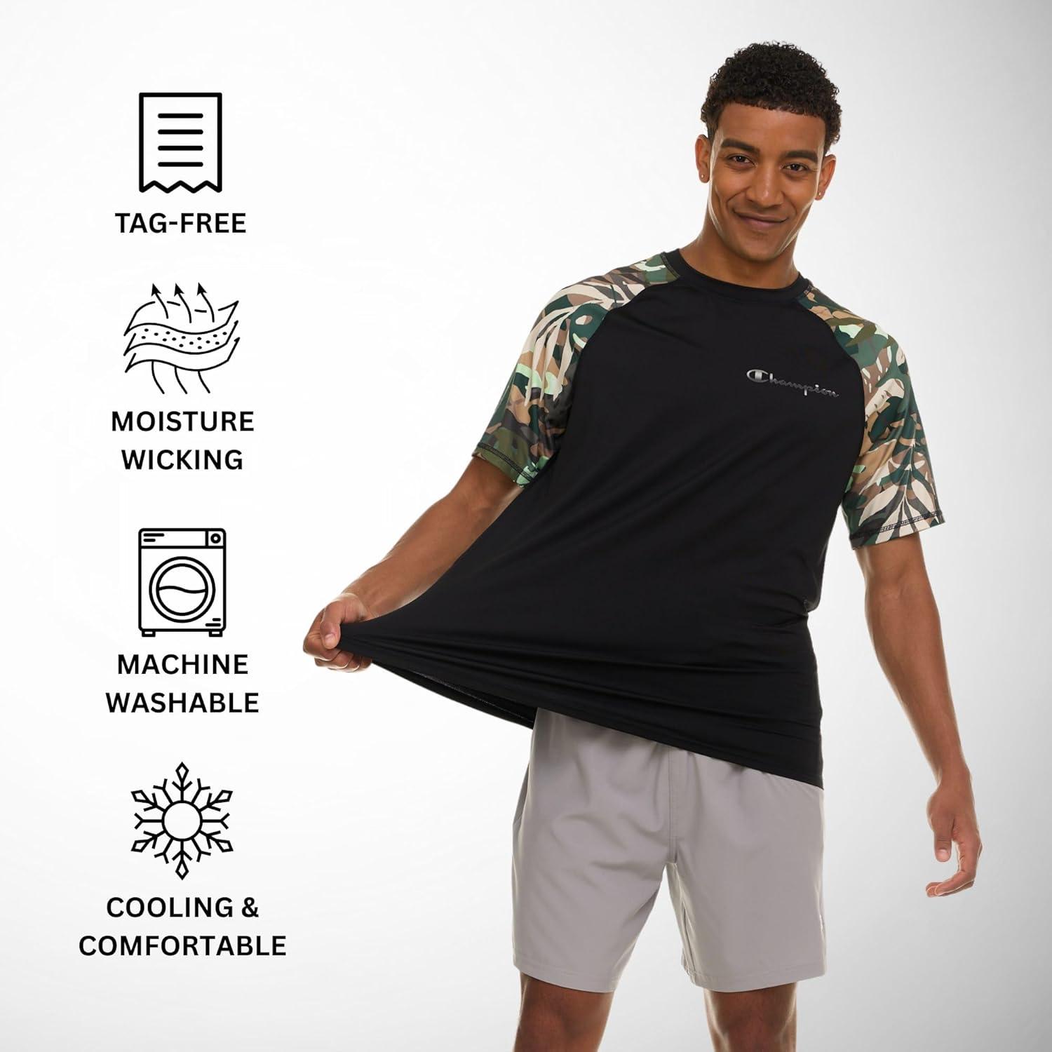 Champion Rash Guard for Men Short Sleeve, Mens Swim Shirt, Sun Shirt UPF+ 50 UV Protection, SPF Quick Drying Rashguard(Black/Camo)