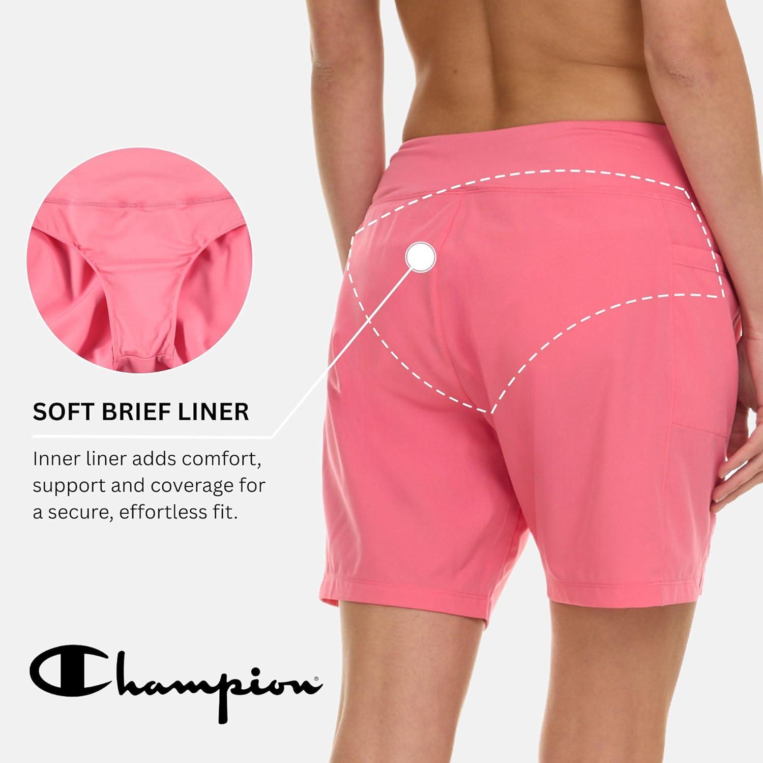 Champion Swim Board Shorts for Women, 5”/7” Swim Shorts Women with Pockets for Beach, Pool, Summer(Pink)