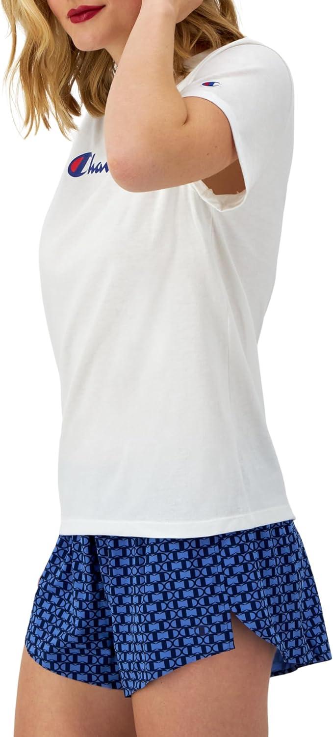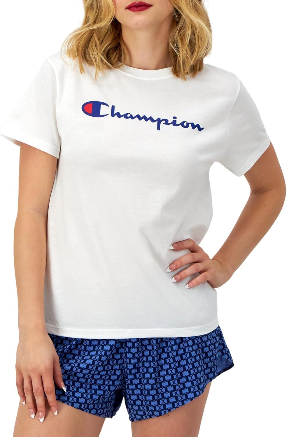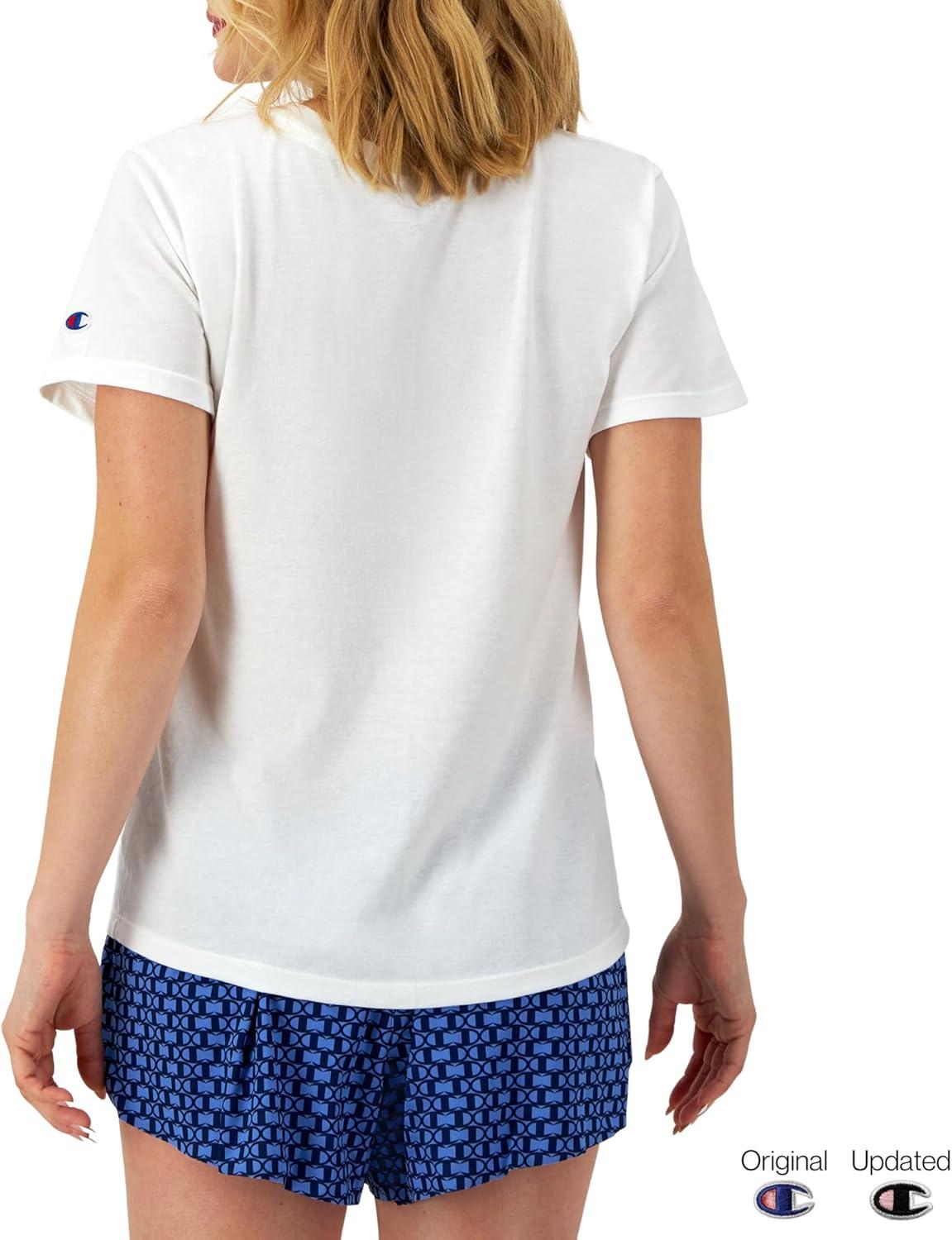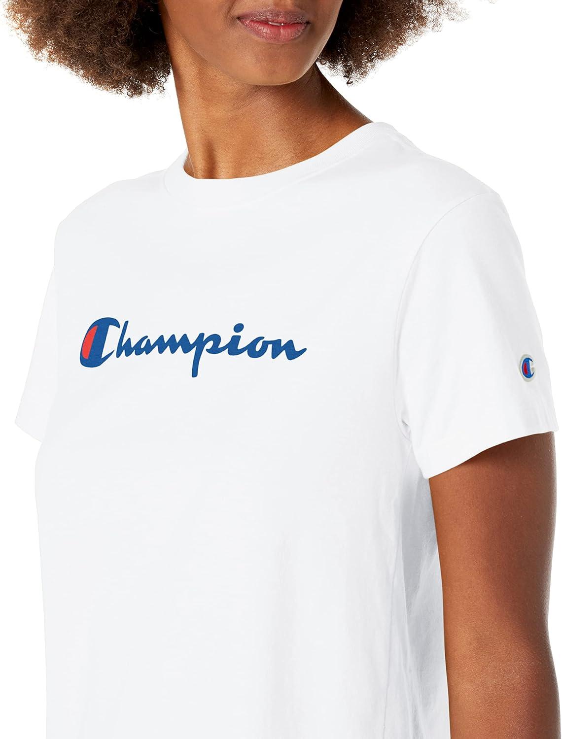Champion Women’s Classic Short Sleeve Graphic T-Shirt, Standard Fit, Script Logo(White – Classic Script Logo)