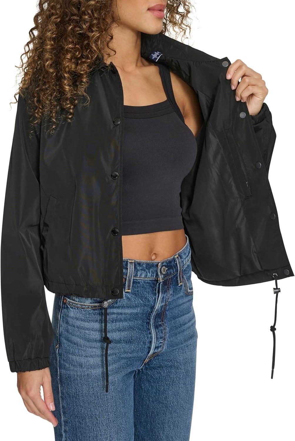 Snap Front Closure: Center front snap closure for easy wearing and a secure, adjustable fit. Practical Welt Pockets: Two lower welt pockets provide convenient storage for essentials while maintaining a sleek silhouette. Elastic Cuffs and Waistband: Elastic detailing at the cuffs and waistband ensures a snug, flattering fit and keeps out the elements. Customizable Fit: Draw cord at the hem allows for an adjustable fit, enhancing comfort and style. Sleek Satin Finish: Lightweight satin fabric gives the jacket a smooth, stylish look with a soft sheen.