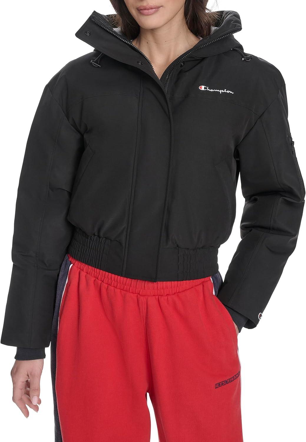 Champion womens Cropped Hooded Ski Bomber(Black)