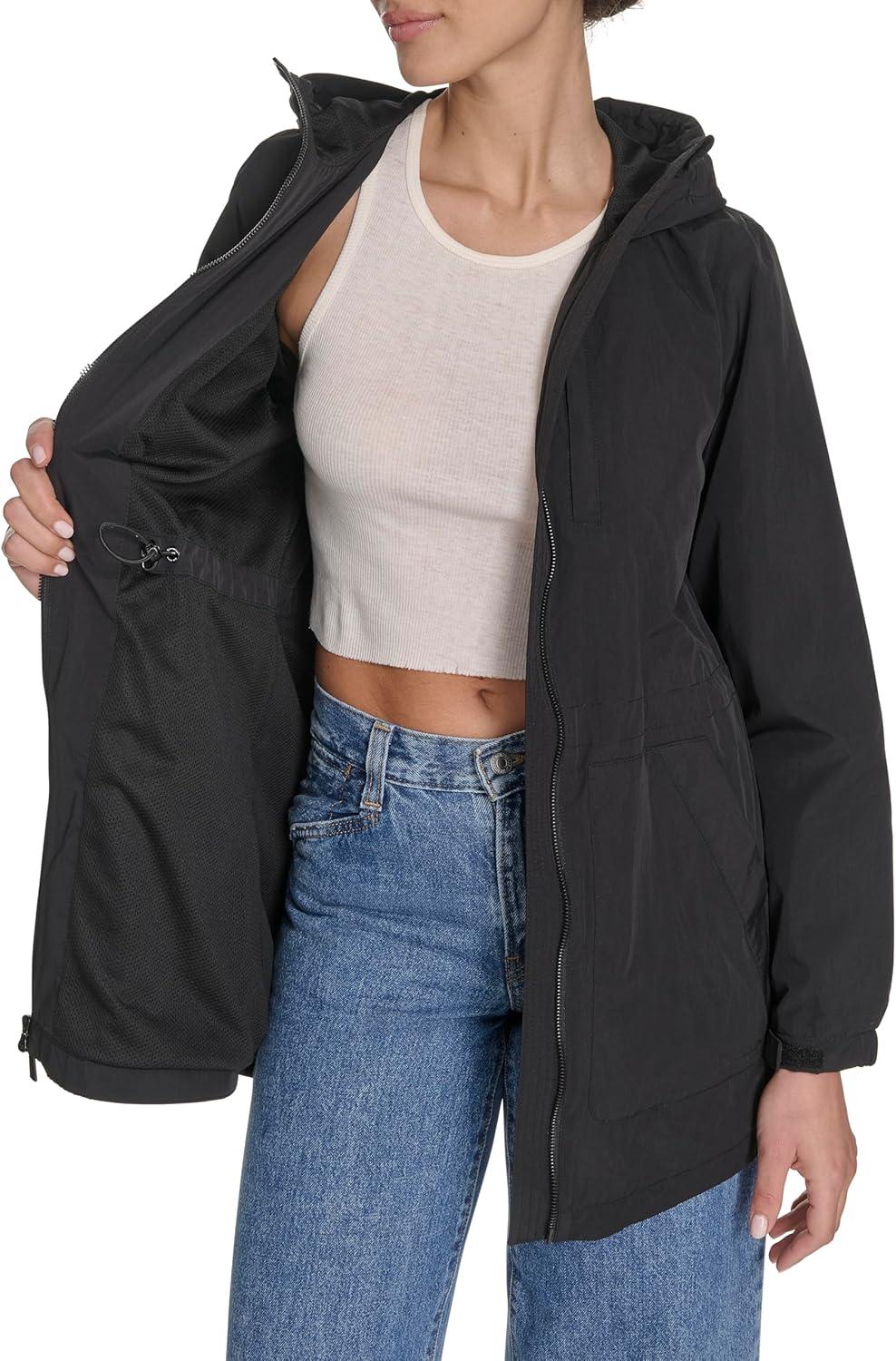 Champion womens Hooded Cinch Waist Rain Jacket(Black)