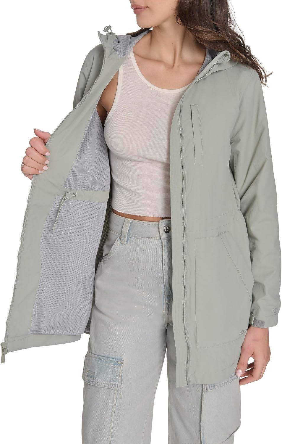 Champion womens Hooded Cinch Waist Rain Jacket(Wrought Iron)