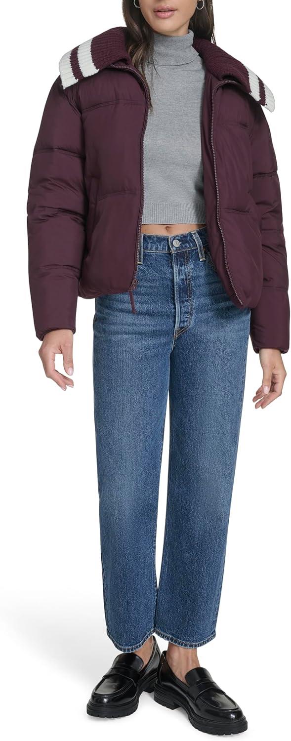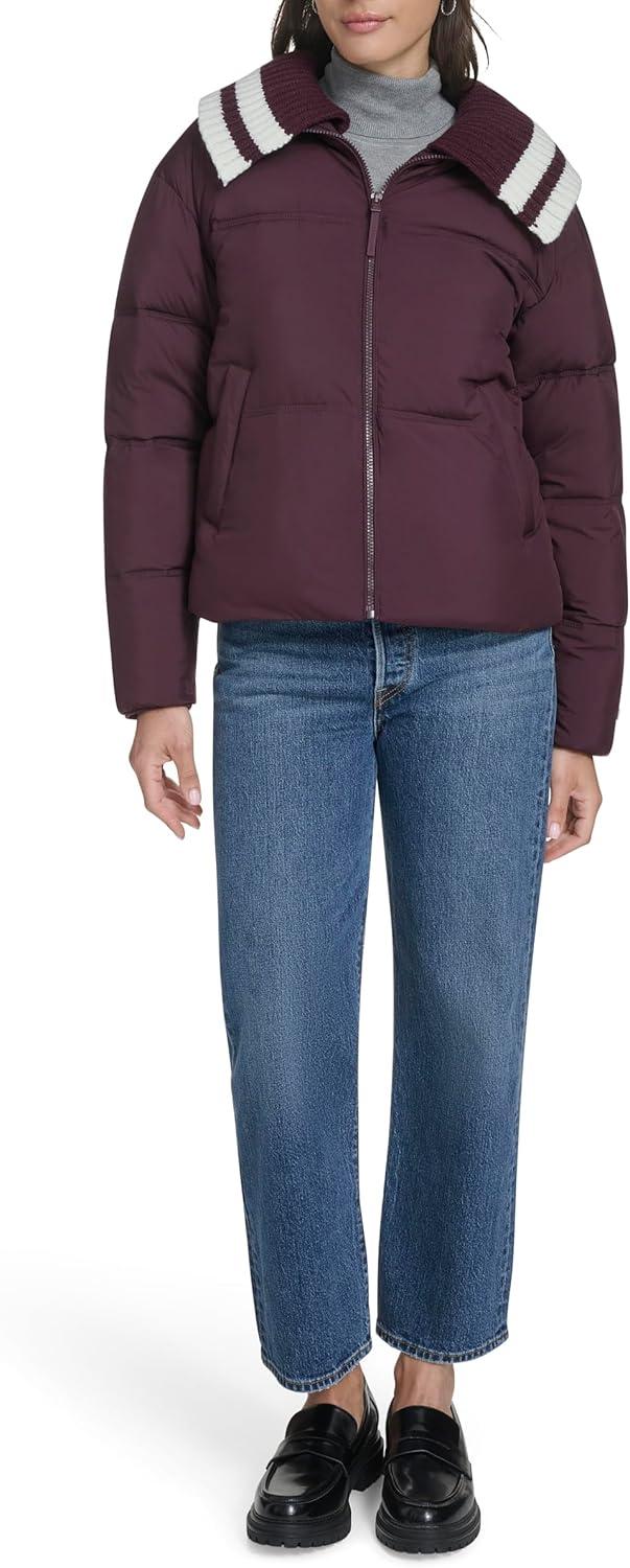 Champion womens Quilted Shawl Collar Puffer Jacket(Burgundy)
