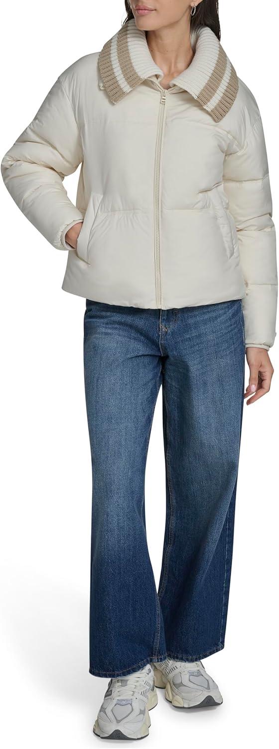 Champion womens Quilted Shawl Collar Puffer Jacket(White)