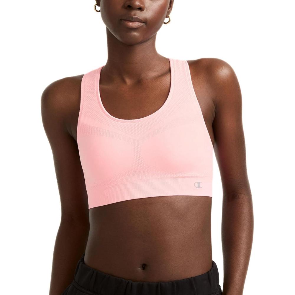 Champion Women’s Sports Bra, Infinity Racerback, Moderate Support, Seamless Sports Bra for Women(Pink Bow)