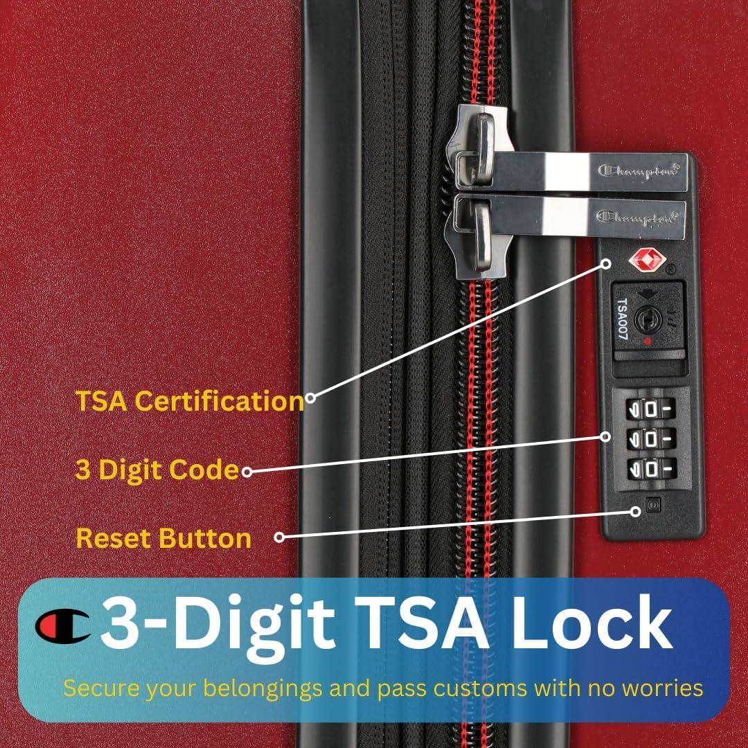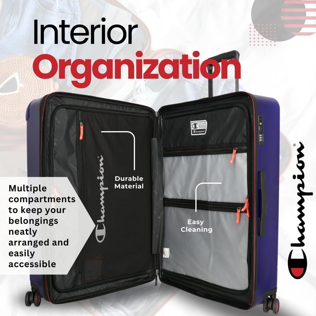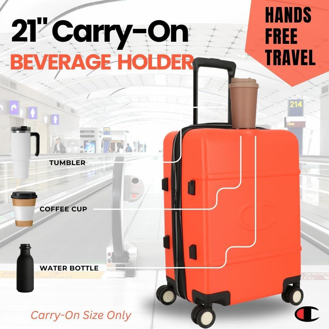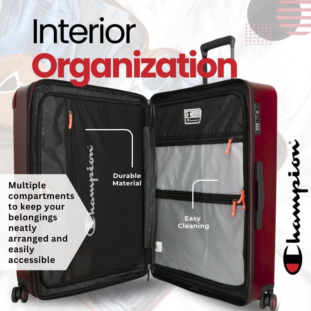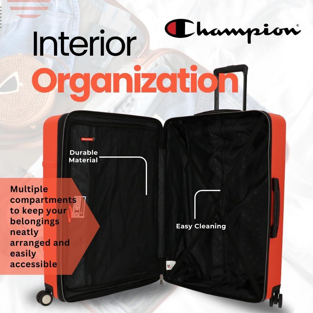 Champion 3-Piece Luggage Set – 21” 25” 29” Hardshell Suitcases with 8 Spinner Wheels – Expandable Carry-On & Checked Luggage – Durable ABS Material – Travel Bags for Men & Women – Mandarin Red(Mandarin Red)