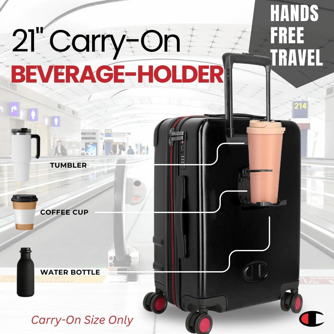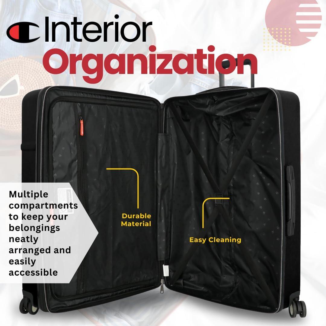 Champion 3-Piece Luggage Set – 21” 25” 29” Hardshell Suitcases with 8 Spinner Wheels – Expandable Carry-On & Checked Luggage – Durable ABS Material – Travel Bags – With TSA Lock – Astral(Black)