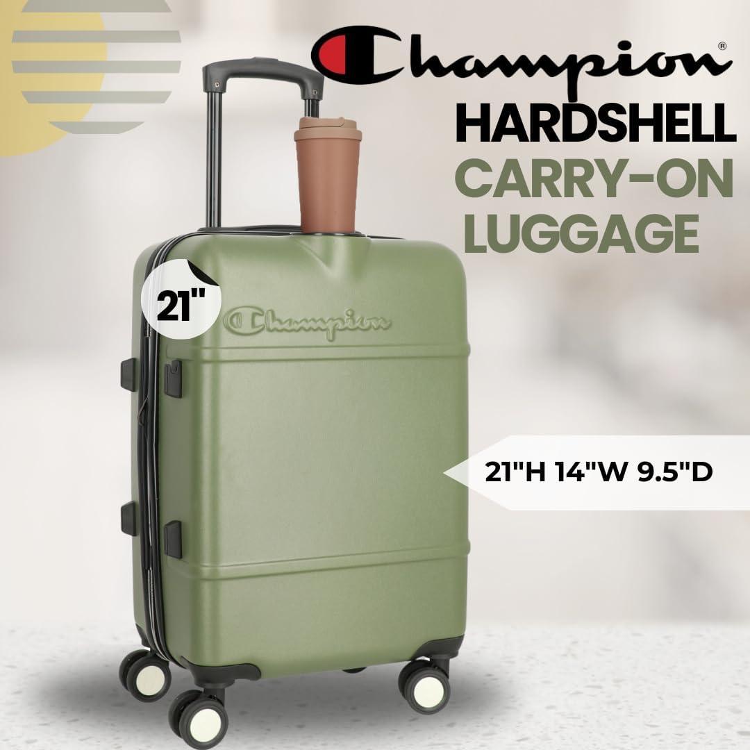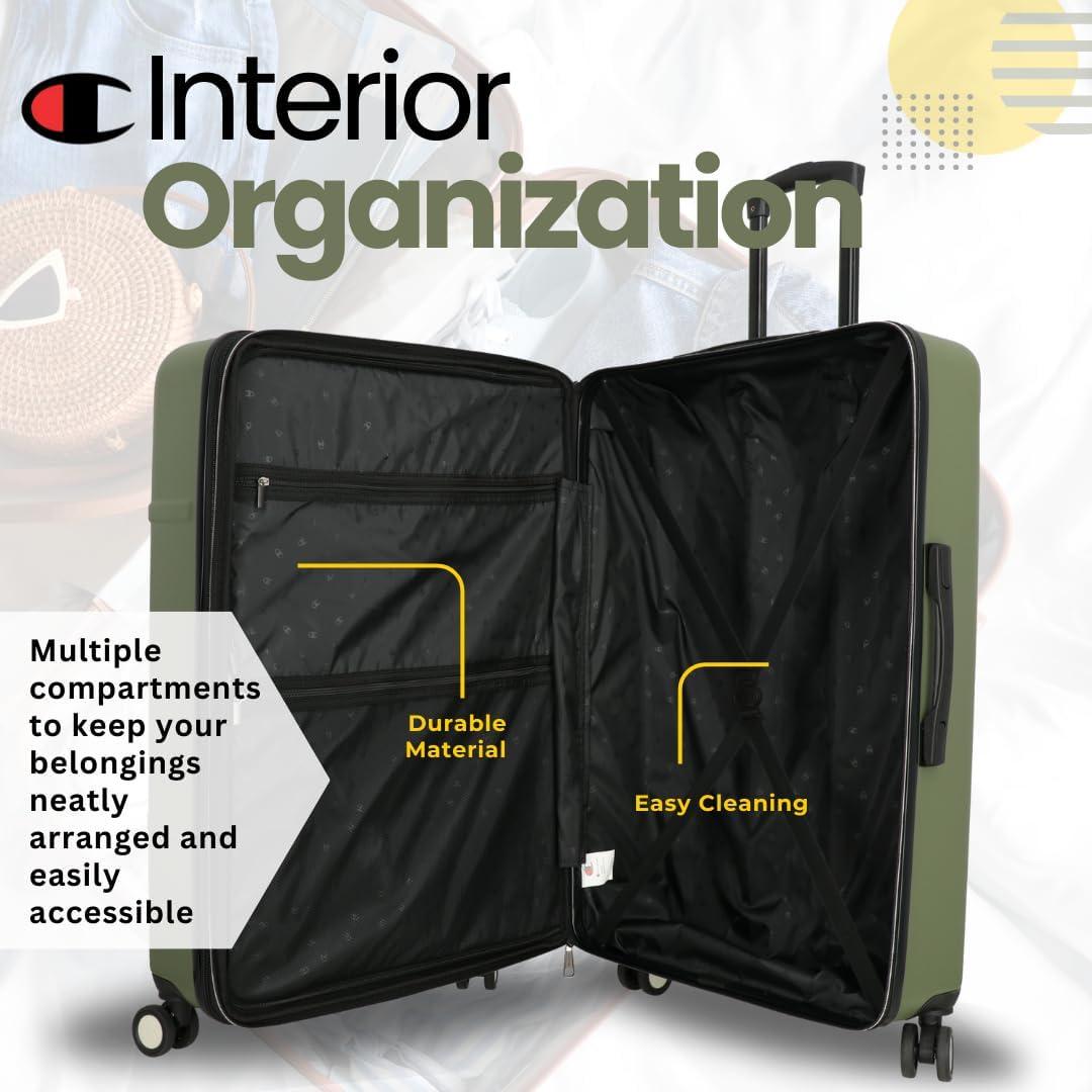 Champion 3-Piece Luggage Set – 21” 25” 29” Hardshell Suitcases with 8 Spinner Wheels – Expandable Carry-On & Checked Luggage – Durable ABS Material – Travel Bags – Airline Approved – Chive(Chive)