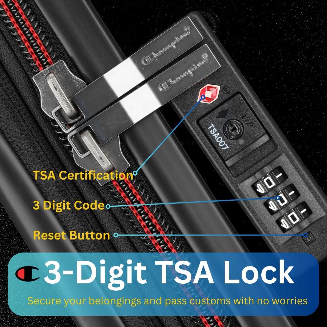Champion 3-Piece Luggage Set – 21” 25” 29” Hardshell Suitcases with 8 Spinner Wheels – Expandable Carry-On & Checked Luggage – Durable ABS Material – Travel Bags – Airline Approved – Chive(True Black)