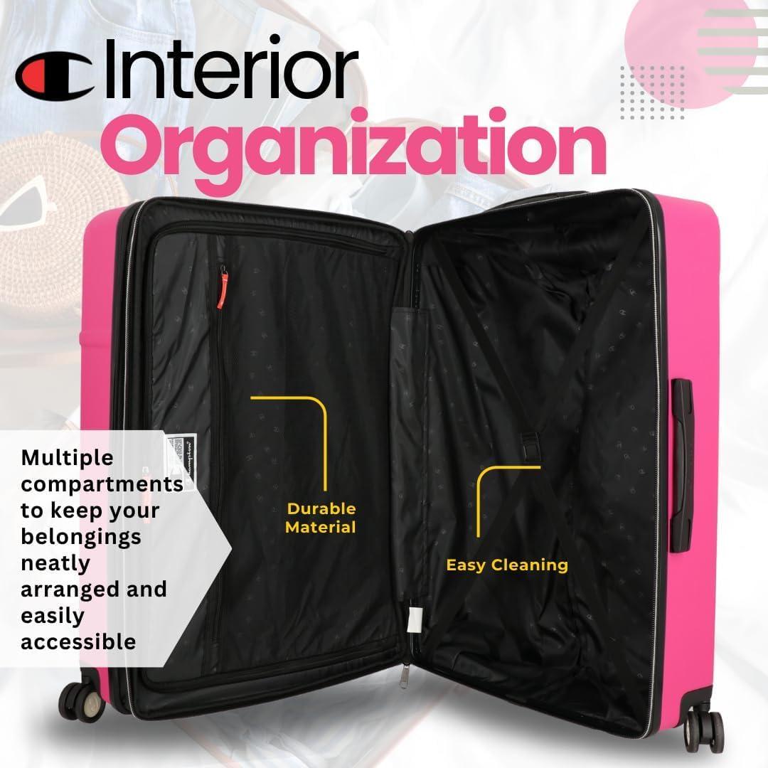 Champion 3-Piece Luggage Set – 21” 25” 29” Hardshell Suitcases with 8 Spinner Wheels – Expandable Carry-On & Checked Luggage – Durable ABS Material – Travel Bags – Airline Approved – Chive(Very Berry)